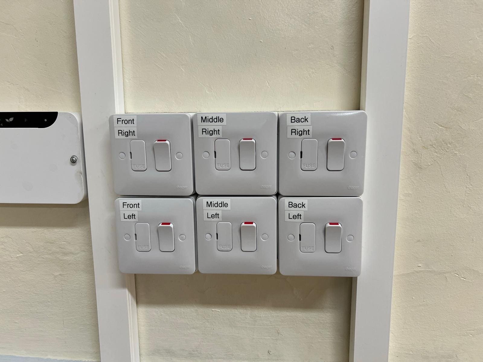 Each heater was wired to a low‑level fuse spur, giving the hall’s management the ability to switch individual heaters off. This gives full flexibility to heat only the areas in use, perfect for smaller meetings, classes or partial hall hire.